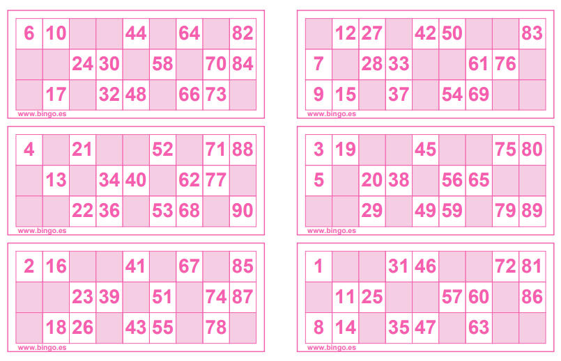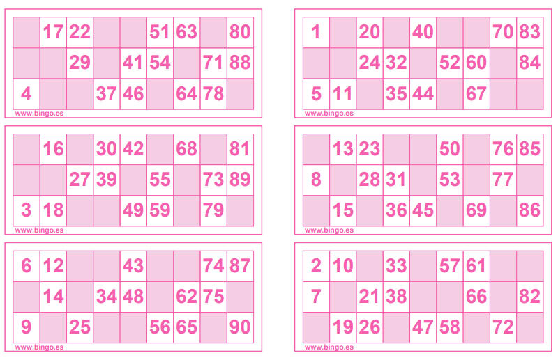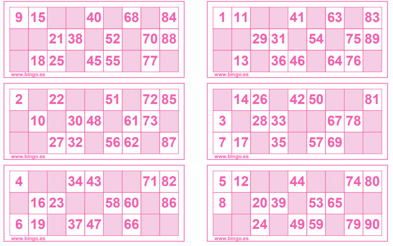 ¿Estáis aburrid@s en casa y no sabéis qué hacer? Os proponemos jugar al bingo. A continuación os dejamos unos cartones, lo único que tenéis que hacer es copiarlos en un papel para poder ir tachando los números que van saliendo. Cread papelitos con números del 1 al 90 y metedlos en un tarro, habrá una persona que irá sacando los números de uno en uno y cantándolos, los demás solo tendréis que ir tachando.